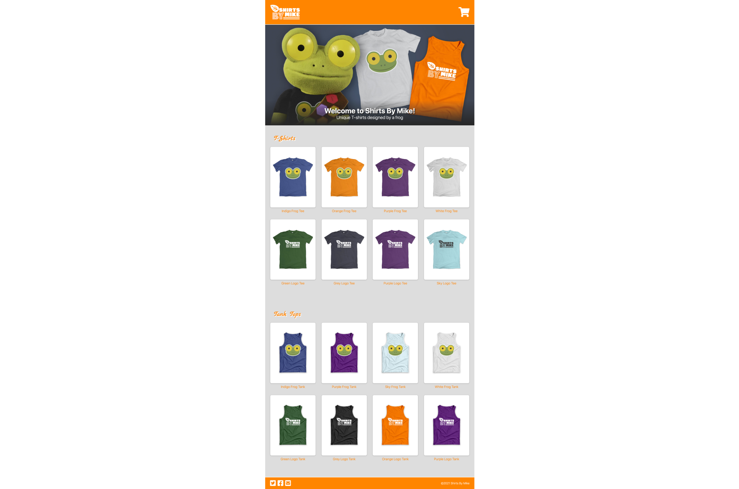 I followed the main theme of the shirtsbymike.com website when developing the following